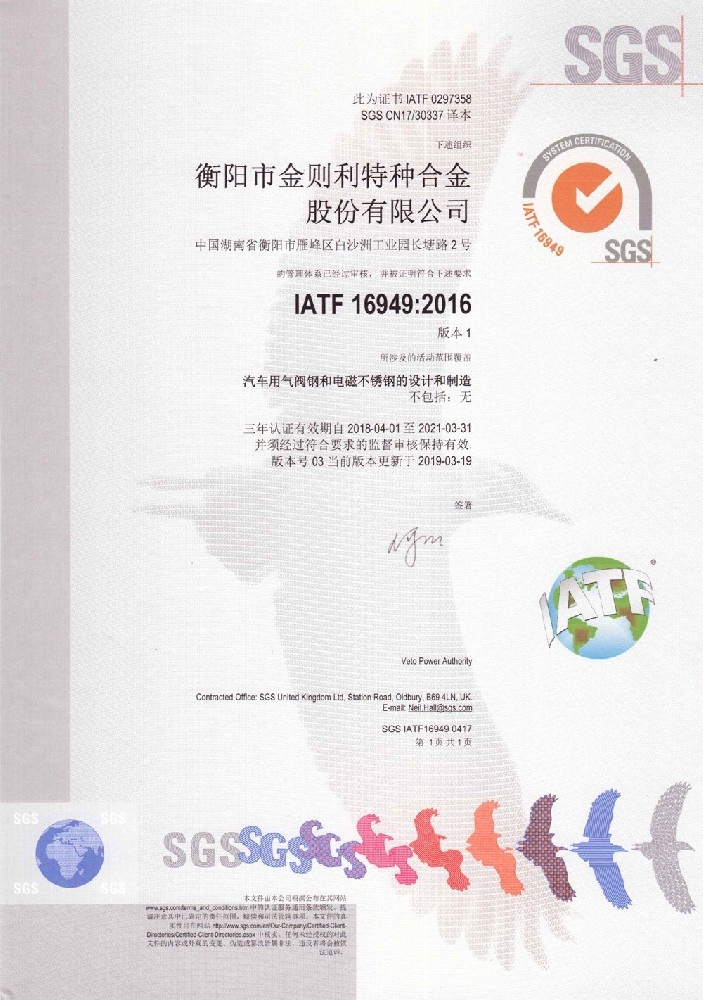 衡陽市金則利特種合金股份有限公司成立于一九九九年十二月,注冊(cè)資本人民幣兩千兩百萬元。注冊(cè)地址:衡陽市雁峰區(qū)白沙洲工業(yè)園長塘路2號(hào)。公司主營耐蝕軟磁合金,為湖南省高新技術(shù)企業(yè)。公司自成立以來,即致力于耐蝕軟磁合金的研發(fā)。 研制出的JL-31(00Cr13si2Pb)、JL-31B(00Cr13si2)、JL-31BS(00Cr13Si2S)、JL-37B(0Cr17Si2)、JL-37(0Cr17···